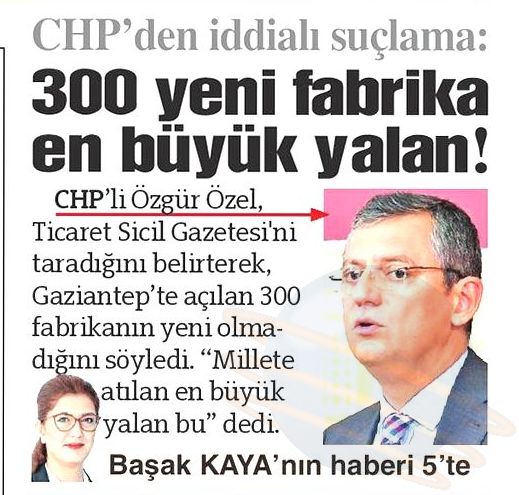 CHP Grup Başkanvekili ve Manisa Milletvekili Özgür Özel, Gaziantep'te açılışı yapılan 300 fabrikayla ilgili paylaşımda bulundu ve 'Sanayi sitesindeki lokantanın adı bile listede' iddiasında bulundu.