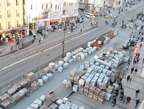 Yerli ve yabancı turizmin merkezi, ticaretin kalbi Laleli Ordu Caddesi'ndeki yol ve kaldırım düzenlemesinde kullanılacak taşların paletler üstünde etrafa bırakılması hem yayaların yürümesini hem de esnafın işini sekteye uğratıyor.