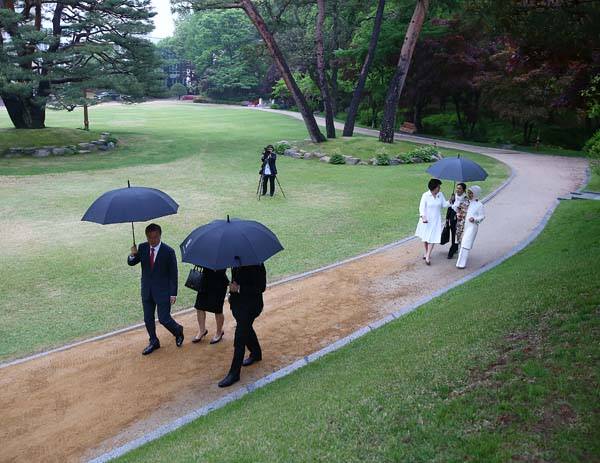 Cumhurbaşkanı Recep Tayyip Erdoğan ve eşi Emine Erdoğan, Güney Kore Devlet Başkanı Moon Jae-in daveti üzerine Başkent Seul'deki Kore Evi'nde çay ikramına katıldı.