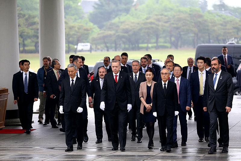 Erdoğan, Güney Kore Devlet Başkanı Moon Jae-in ile temasları sonrasında Cumhurbaşkanlığı Sarayı'ndan Ulusal Mezarlığa gitti.