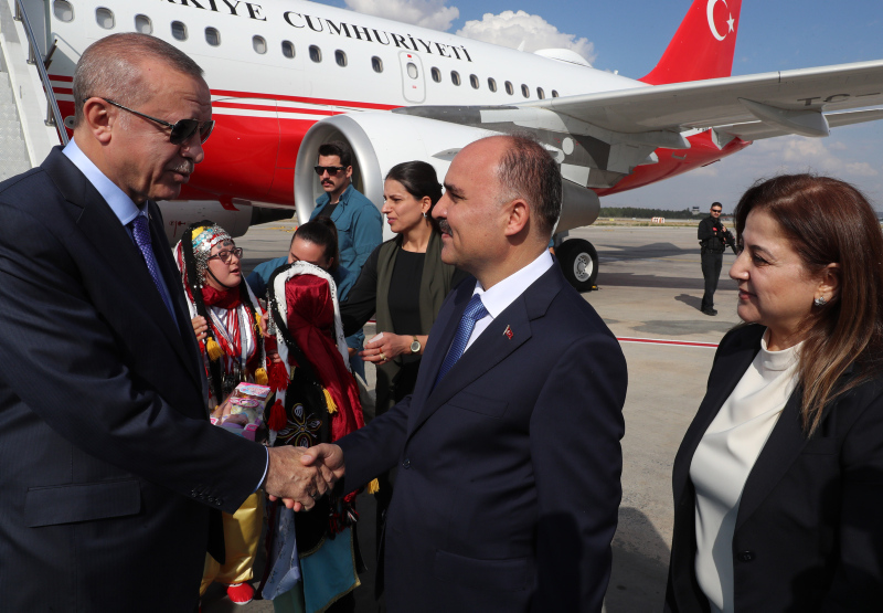 Erdoğan, Kayseri Havalimanı'nda yöresel kıyafet giymiş çocuklar tarafından karşılandı.