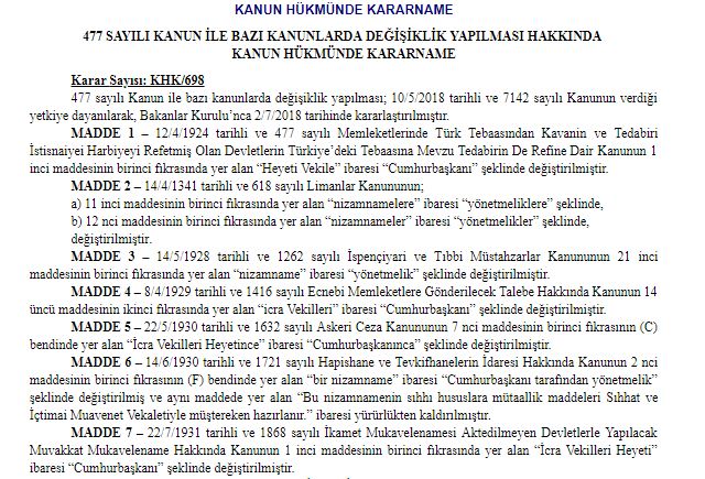 Resmi Gazete'nin bugünkü sayısında yer alan Kanun Hükmünde Kararname'de, Cumhurbaşkanlığı Hükümet Sistemi'ne yönelik düzenlemeler yer aldı..