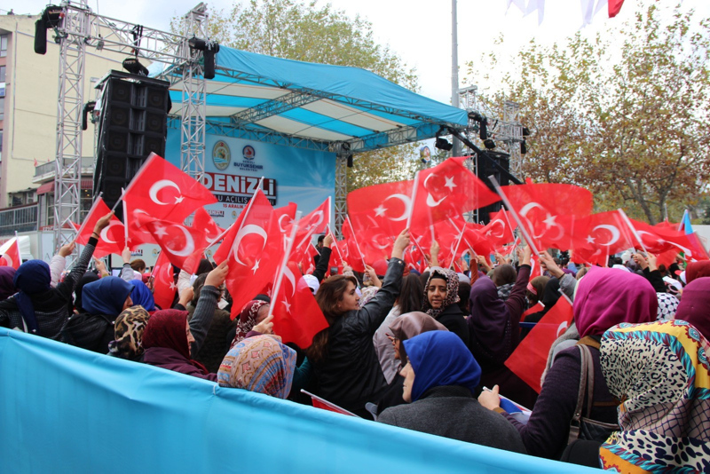 Geniş güvenlik önlemlerinin alındığı tören alanına vatandaşlar üstleri arandıktan sonra alındı.