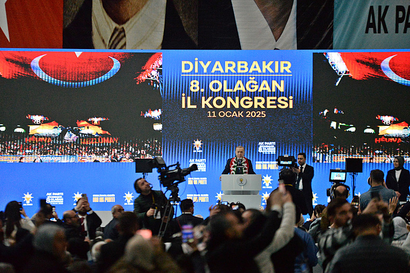 Başkan Recep Tayyip Erdoğan, AK Parti il kongreleri çerçevesinde Diyarbakır'da düzenlenen İl Kongresi'ne katıldı. Erdoğan, Diyarbakır'da coşkulu bir kalabalık tarafından karşılanırken, salonda dikkat çeken pankartlar yer aldı.