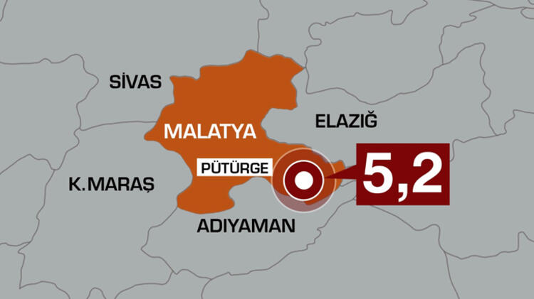 Malatya Pütürge'de saat 12.57'de 5.2 büyüklüğünde bir deprem meydana geldi. Depremin çevre illerden de hissedildiği bildirildi. Kandilli Rasathanesi'nden yapılan açıklamada ise depremin büyüklüğü 5.7 olarak duyuruldu.