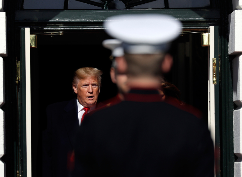 Beyaz Saray'a gelişinde tören kıtası tarafından karşılanan Cumhurbaşkanı Erdoğan ve eşi Emine Erdoğan, makam aracından inişlerinde ABD Başkanı Trump ve eşi Melania Trump ile tokalaşarak gazetecileri selamladı.