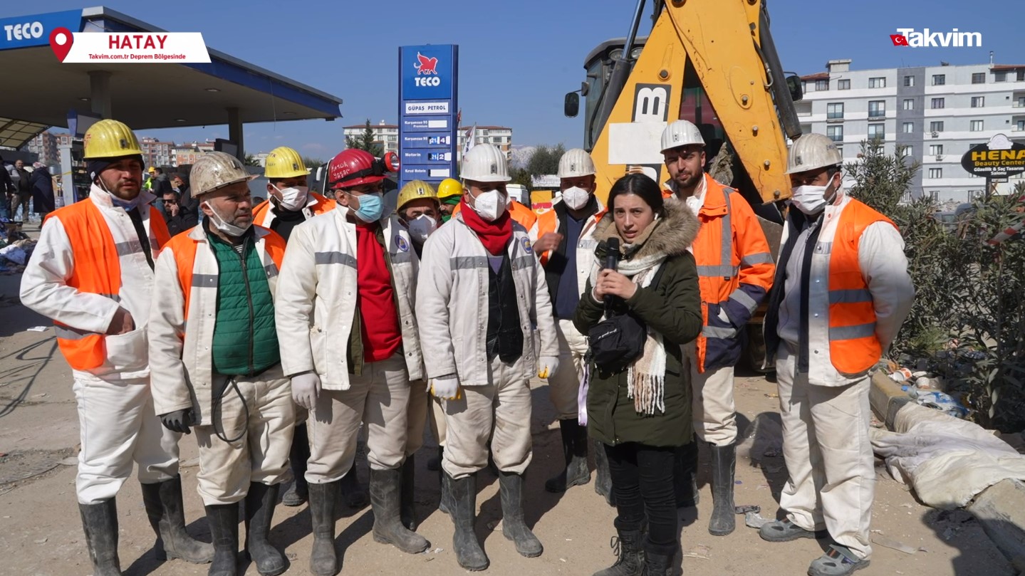 Türkiye, 6 Şubat'ta Kahramanmaraş merkez üslü çifte depremin ardından yaralarını sarmaya çalışıyor. Hatay'da yaşanan yıkımı ve çalışmaları yerinden görüntülemek için bölgeye giden takvim.com.tr ekibinden sunucu editör Fatma Gül ve video editörü Yasin Aktaş, enkaz çalışmalarında canla başla hayat kurtarma mücadelesi veren Zonguldaklı kahraman madencilerle konuştu.