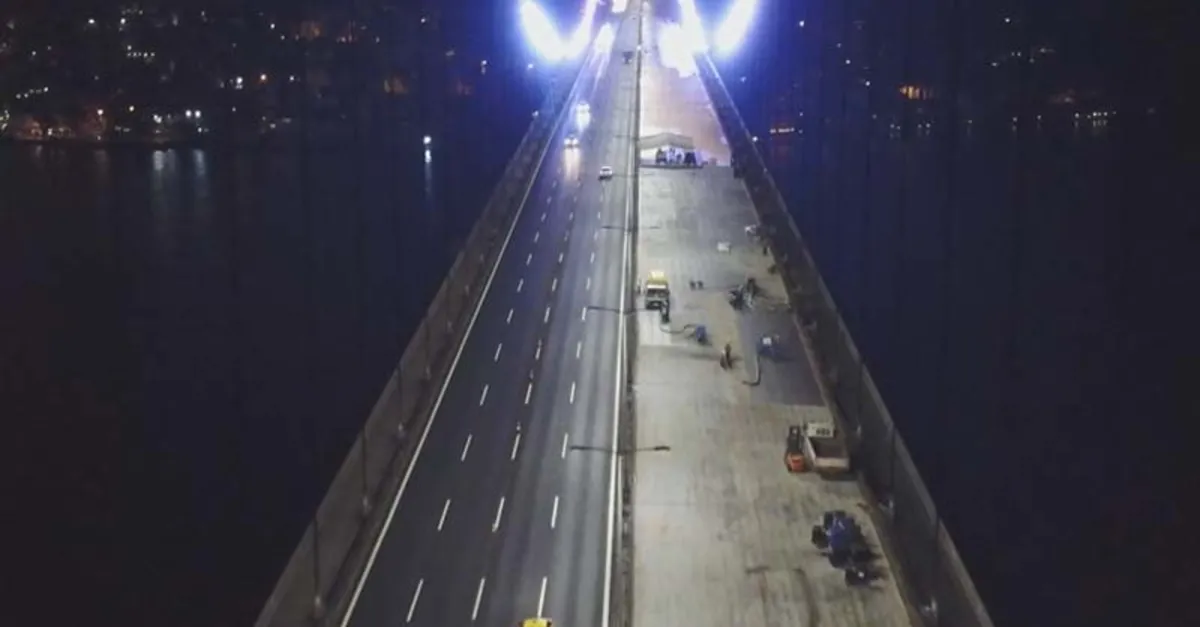 Fatih Sultan Mehmet Köprüsü'nde 27 Haziran'da başlayan asfalt yenileme çalışmaları 28. gününde devam ediyor.