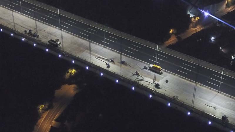 Fatih Sultan Mehmet Köprüsü'nde (FSM) süren çalışmalar gece havadan görüntülendi.