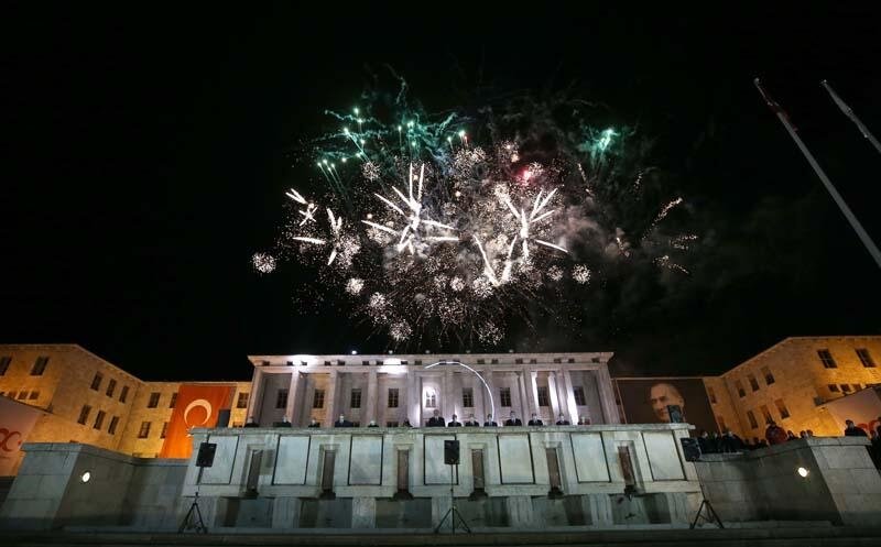 Gün boyu yapılan etkinliklerin ardından saat 21.00'de TBMM'nin bahçesinde havai fişek ve lazer gösterisi düzenlendi.