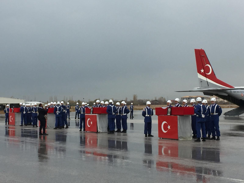 İl Müftüsü Nimetullah Arvas'ın okuduğu dua sonrası şehitler Topçu Er Samet Kaymakçı (Gaziantep), Topçu Çavuş Mehmet Kaşık (Kahramanmaraş/Onikişubat), Topçu Er Yusuf Önder (Antalya/Alanya) ve Topçu Er Melih Sancar'ın (İstanbul/Eyüp) naaşları askeri uçakla memleketlerine uğurlandı.