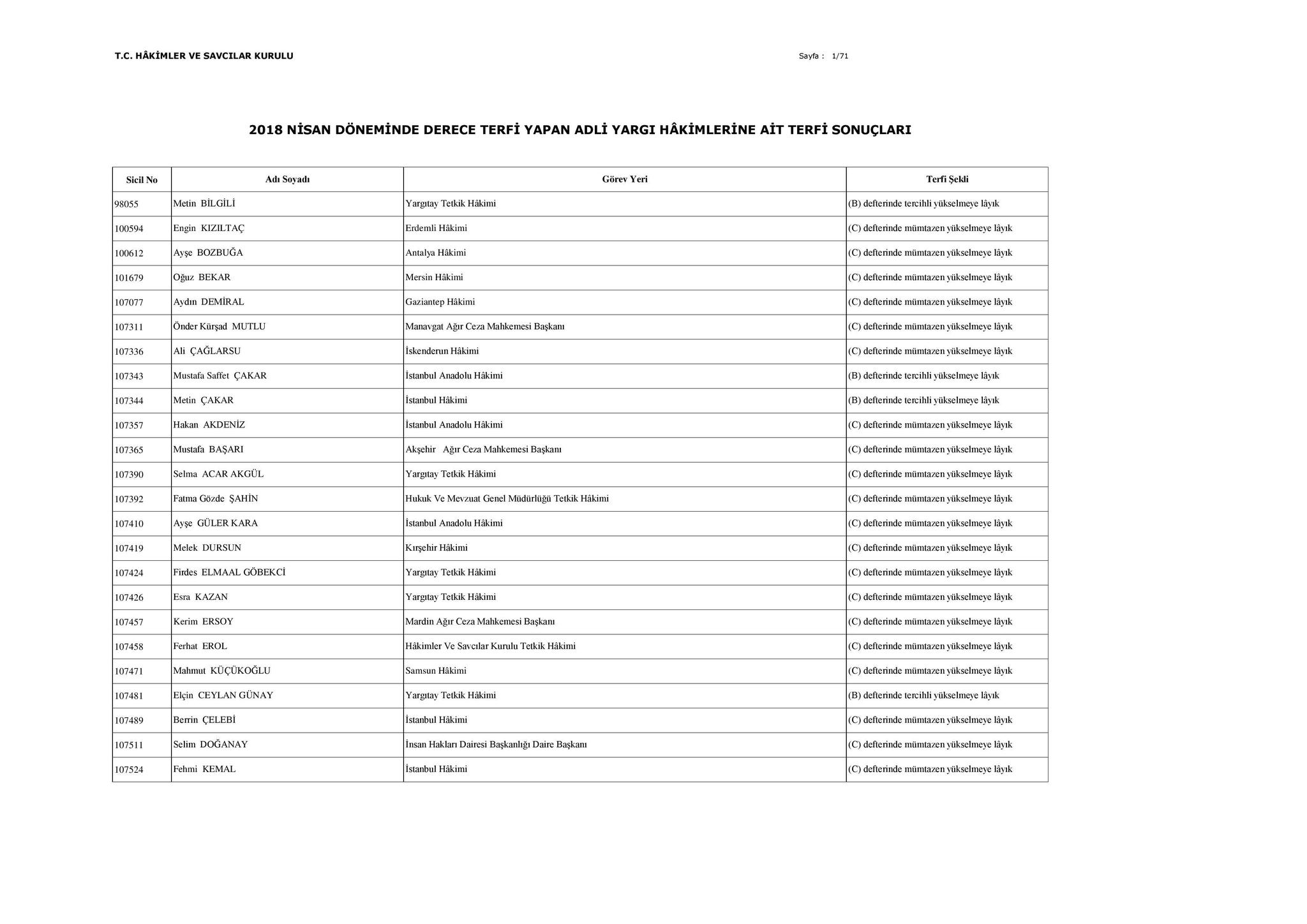 NİSAN 2018 DÖNEMİNDE DERECE TERFİ YAPAN ADLİ YARGI HAKİMLERİ LİSTESİ