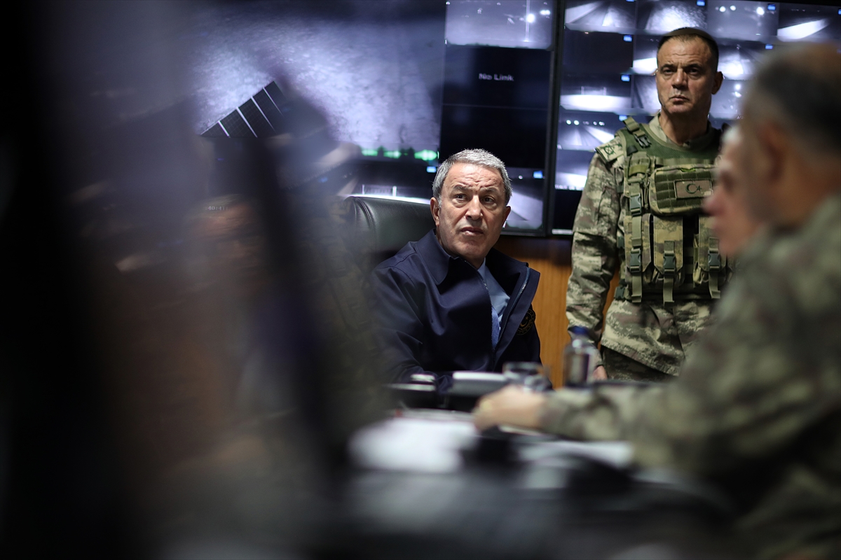 Faaliyetlere ilişkin brifing alan, talimatlar veren Akar, hudut hattını anbean takip eden Sınır Güvenlik Sistemi'nden sınırı inceledi. Barış Pınarı Harekatı kapsamında Tel Abyad'ta bulunan bir birliğin komutanıyla da telsizden görüşen Akar, personelin durumu, faaliyetlerine ilişkin bilgi aldı. Mehmetçiğin moral ve motivasyonuna ilişkin sorusuna, "Moralimiz yüksek her türlü göreve hazırız" yanıtını alan Akar, "Burada herhangi bir şey bitmiş değil, her an her şey olabilir. Ona göre herkesin her an hazırlıklı olması lazım" karşılığını verdi.