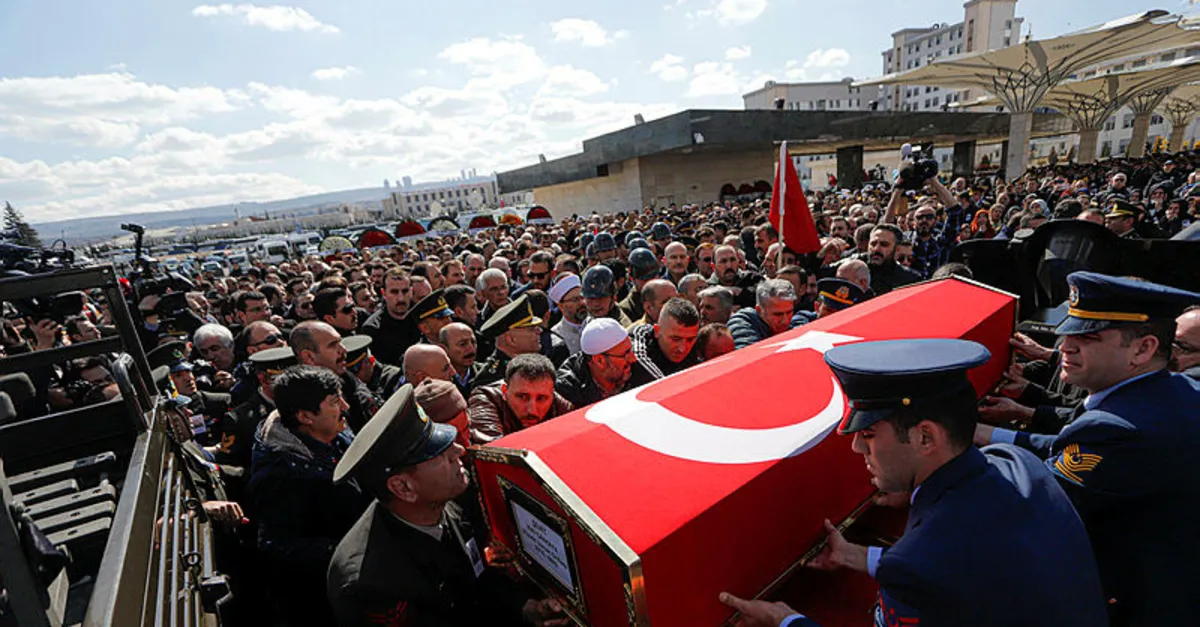 Öğle namazı sonrası kılınan cenaze namazının ardından şehidin Türk bayrağına sarılı tabutunu devlet erkanı omuzladı.