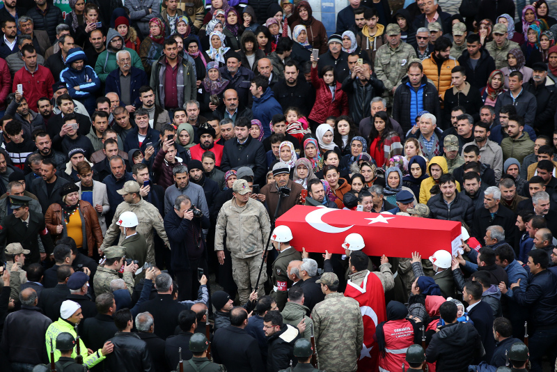 İdlib şehitlerinden Uzman Çavuş Serkan Deprem'in Türk bayrağına sarılı tabutu, Hatay'da düzenlenen törenin ardından ambulansla Düziçi ilçesi İstiklal Mahallesi'ndeki babaevine getirildi.
