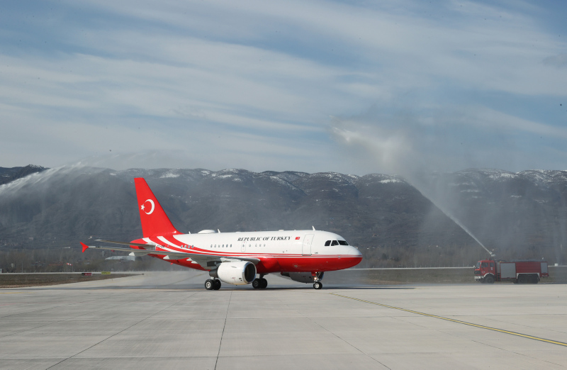 Erdoğan'ı taşıyan uçak, yeni yapılan Tokat Yeni Havalimanı'na indi.