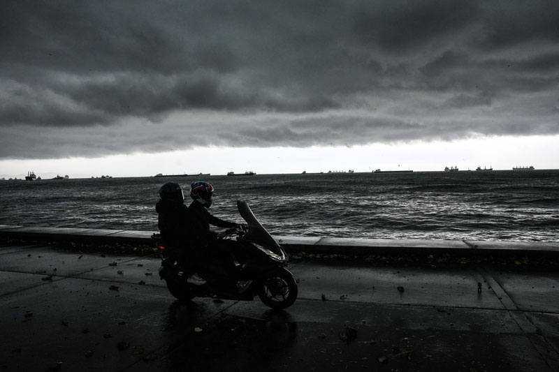İstanbul'da sabah saatlerinden itibaren etkili olan şiddetli rüzgar öğlen saatlerinde yerini yağmura bıraktı. Sağanak yağıştan önce şehrin üzerine çöken kara bulurlar gündüzü geceye çevirirken yağmur bulutlarının gelişi anbean görüntülendi.