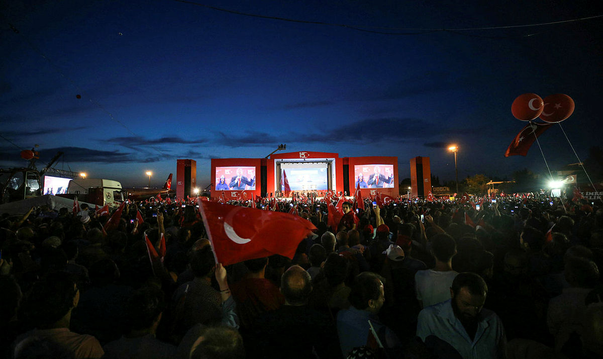 Cumhurbaşkanlığı İletişim Başkanlığı tarafından 15 Temmuz Demokrasi ve Milli Birlik Günü dolayısıyla Atatürk Havalimanı'nda Devlet Konukevi Apronu'nda gerçekleştirilen buluşmada, saygı duruşunda bulunuldu, İstiklal Marşı okundu.