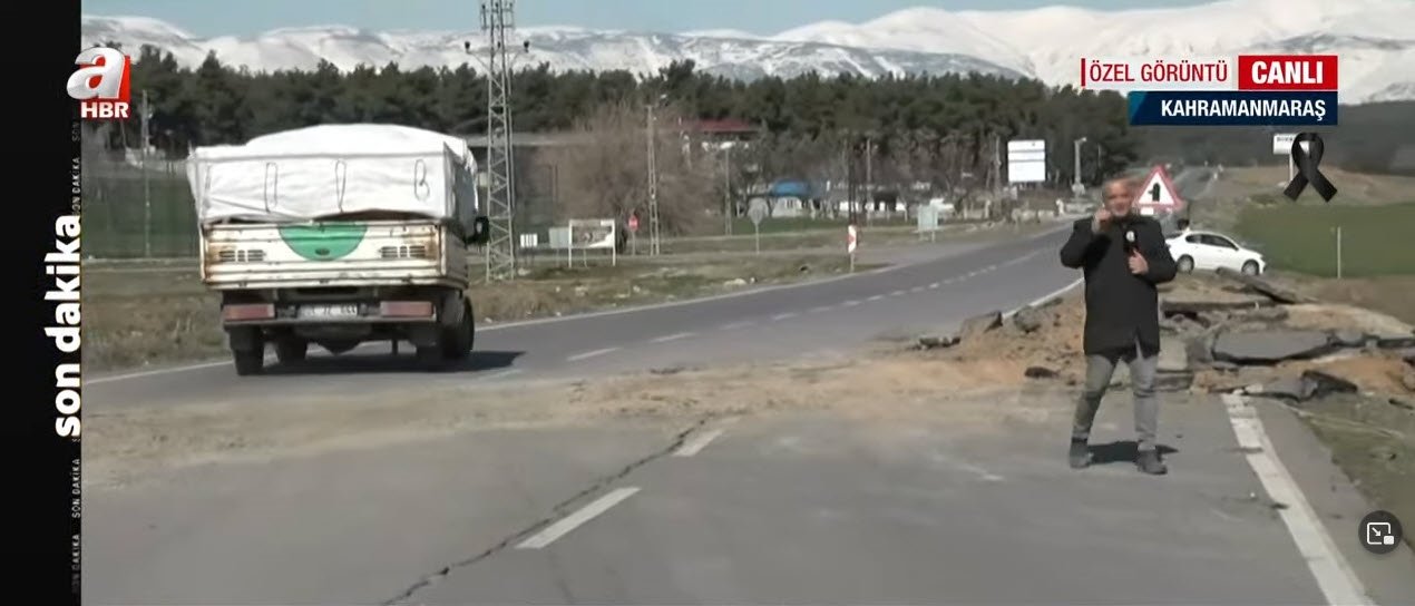 A Haber muhabiri Ata Gündüz Kurşun, Kahramanmaraş'ta 3 metre yolun kaydığı noktadan son durumu aktardı.