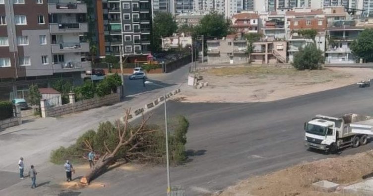 İzmir Büyükşehir Belediyesi, Karşıyaka Şemikler Mahallesi 6276 Sokak üzerinde, yol çalışması yaparken, yaklaşık yarım asırlık fıstık çamı, yol ortasında kaldı.