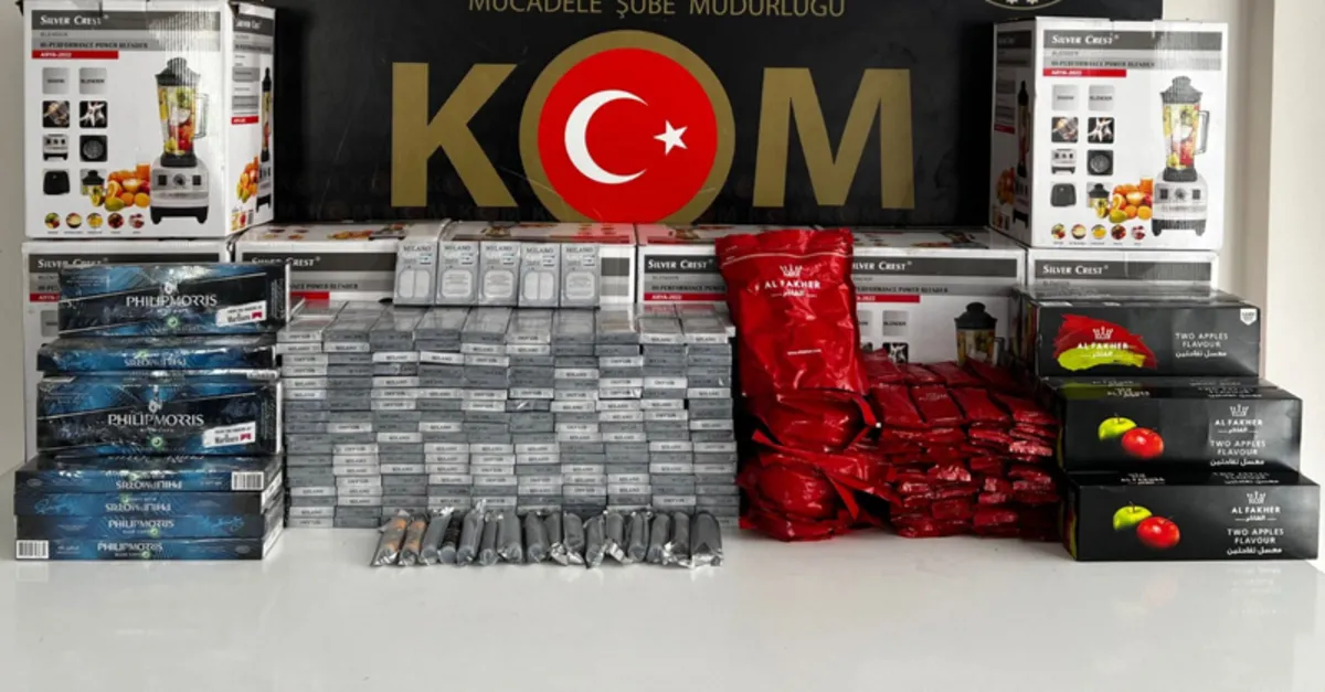 Şüphelilerin adreslerindeki aramalarda 28 kilo 542 gram esrar, piyasa değeri 415 bin TL olan gümrük kaçağı kamyon lastiği, 3 bin 65 paket sigara, 215 cep telefonu aksesuarı, 15 elektronik sigara, 4 cep telefonu aksesuarı, 24 kilo nargile tütünü ve bir miktar uyuşturucu madde ele geçirildi.