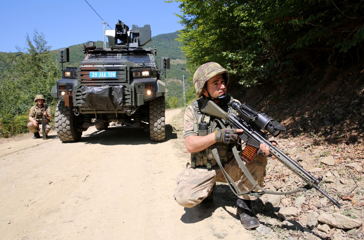 Türkiye'nin ilk keskin nişancı tüfeği 'Bora-12' ile Türk yapımı silahlı zırhlı personel taşıyıcı 'Ejder' kullanan askerler, araziyi didik didik tarıyor. Bölge halkının destek verdiği askerler, operasyon dönüşü ikramlarla karşılanıyor.