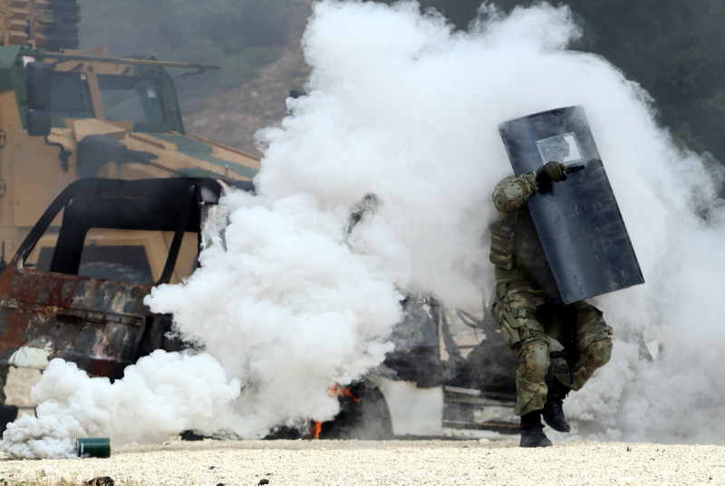 Konusunda uzman eğitmenler tarafından verilen eğitimde mavi bereli komandolar, dikenli tel altında sürünme, muhabere ortamından yaralı taşıma, tazyikli su altında kütük taşıma ve yanan bir suyun altından dalış yaparak geçti.