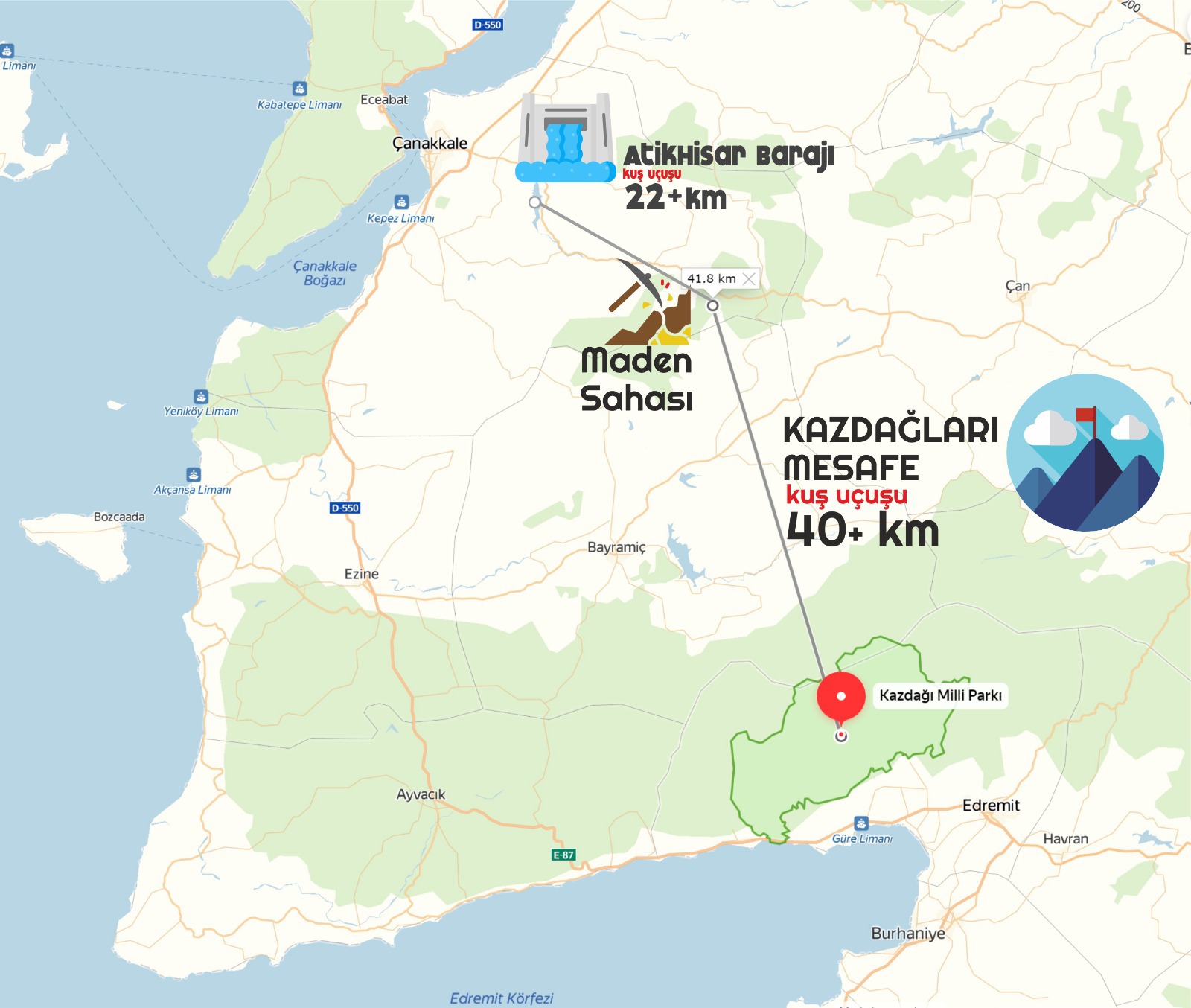AK Parti Grup Başkanvekili ve Çanakkale Milletvekili Bülent Turan yaptığı açıklamada "İlk ruhsat 12 Mart 2001 tarihli. Bu tarihte AK Parti daha kurulmamış bile. ÇED raporuna aykırı bir adıma asla izin verilemez. CHP'li Merkez Belediyesi neden itfaiye ruhsatı başta kendi yetkisindeki her konuda olumlu rapor/izin verdi. Hem maden çıksın hem eylem yapalım nasıl bir mantık. Bölgede çok sayıda CHP'li iş adamı 8 ayrı bölgede maden arama, 11 farklı bölgede kömür, 40'ın üzerinde ise mermer ocağı çalıştırıyor.