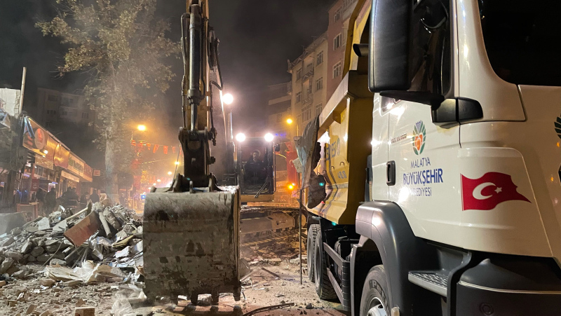 13 kişinin yaralı olarak kurtarıldığı enkazda çalışmaların tamamlanması ile enkaz kaldırma çalışmaları başladı. Malatya Büyükşehir Belediyesine ait iş makinelerince moloz yığınları kamyonlarla sabaha kadar taşındı.