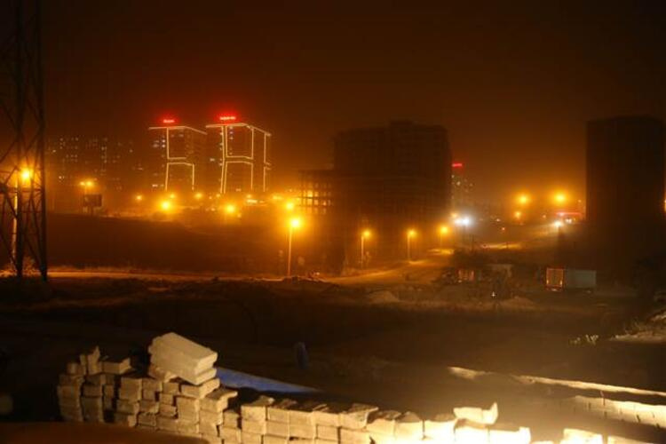 Toz bulutu ilçeyi kaplarken, gökyüzü de kızıla döndü.
