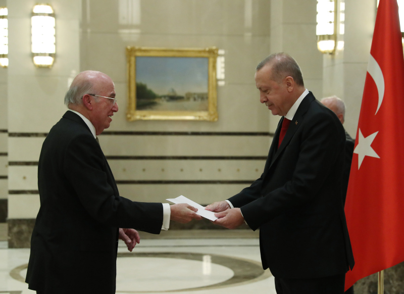Cumhurbaşkanlığı Külliyesi'ndeki kabulde, Büyükelçi Hernandez, Erdoğan'a güven mektubunu sundu.