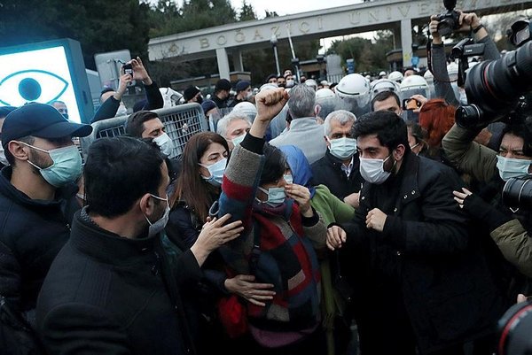 Boğaziçi Üniversitesi'nde rektör atamasını bahane ederek yürüyüş yapan ve polise saldıran CHP, HDP, DHKP-C ve LGBT provokatörleri rektörlük binasını ablukaya altına almaya çalıştı.