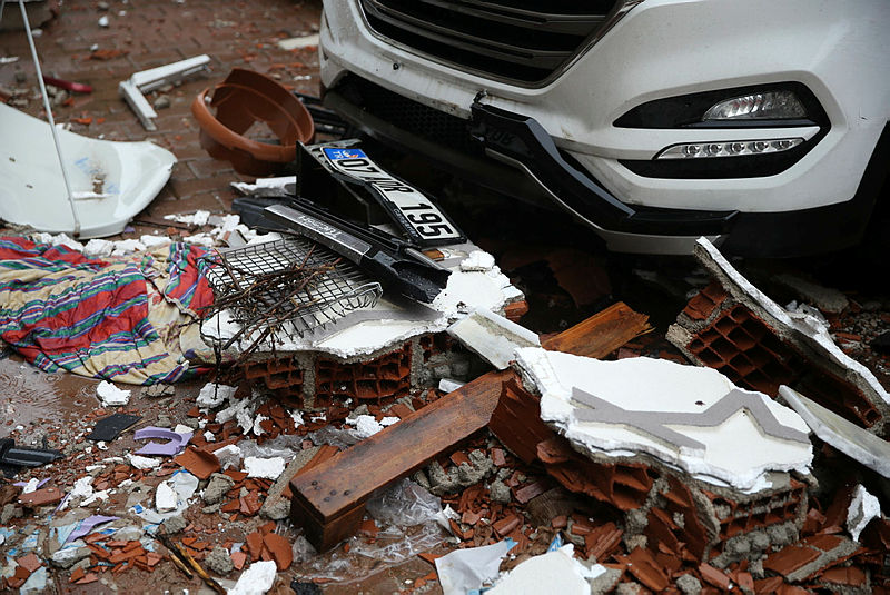 Kepez ilçesindeki Emek Mahallesi 2184 Sokak'ta üç katlı binanın çatısı uçtu. Çatıyla birlikte evin duvar parçaları ve klima motorunun da, otoparktaki araçların üzerine düşmesi sonucu 4 otomobilde hasar oluştu.