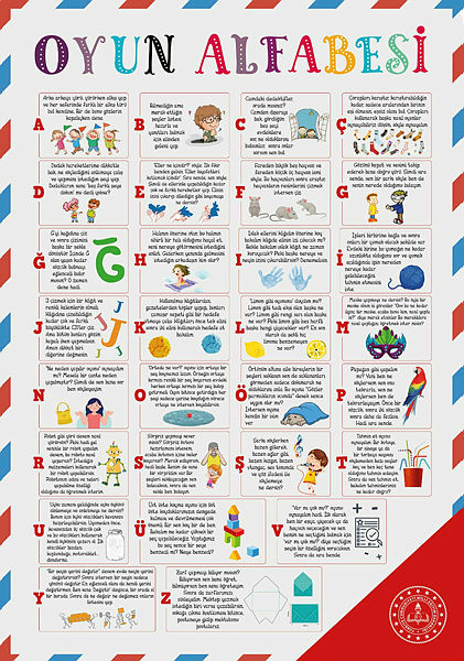 "Oyun Alfabesi"nde her harfe ayrılan kutuda bir oyun yer alıyor. İsteyen çocuklar, alfabedeki oyunlara benzer şekilde hazırladıkları oyunları, Bakanlığın "oyunalfabesi@meb.gov.tr" adresine gönderecek.