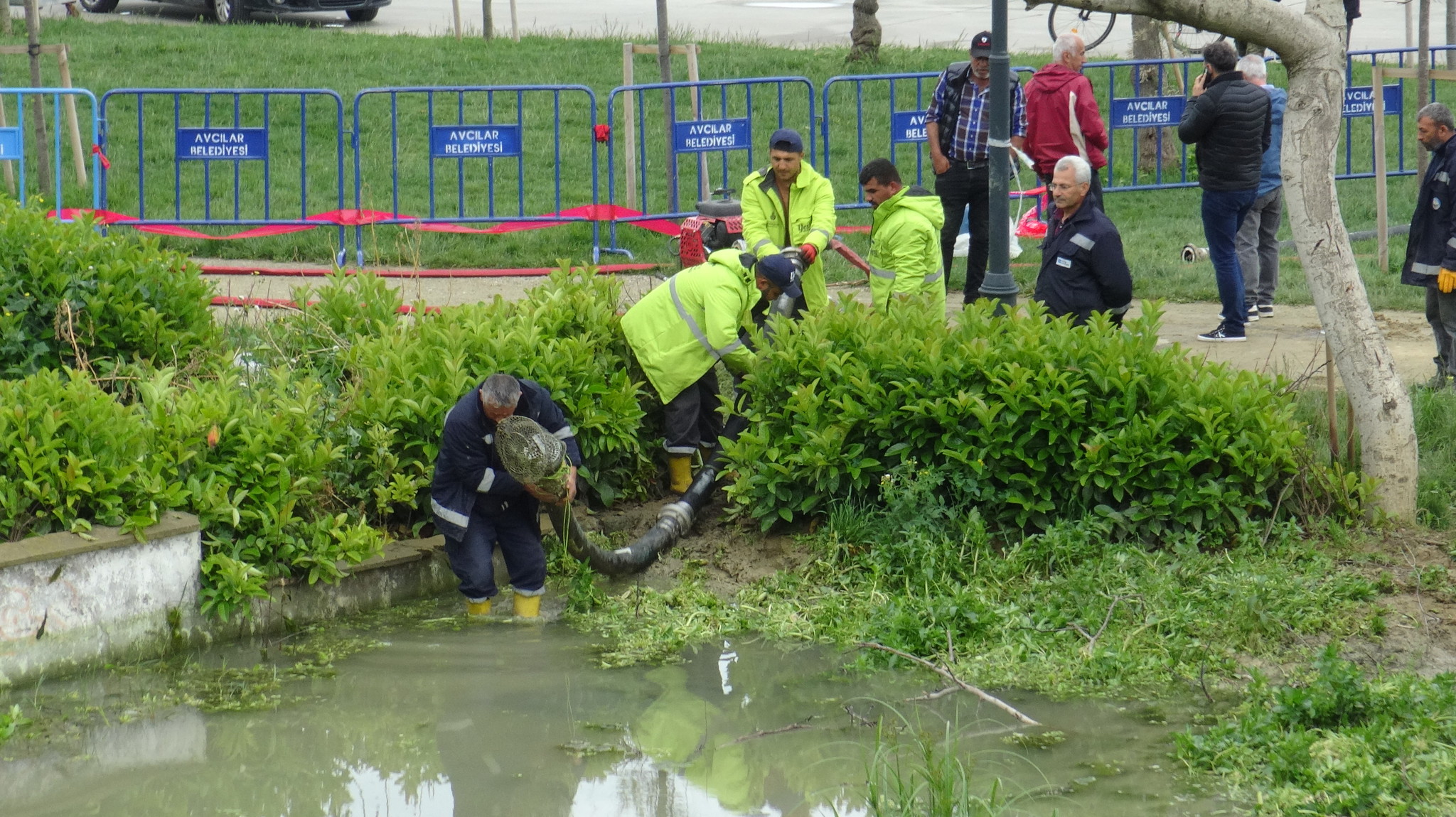 Küçükçekmece'de Menekşe Sahili'nde 5 yaşındaki Edanur Gezer'in su dolu çukura düşerek ölümünün ardından Avcılar'da yağmur suyuyla göle dönüp tehlike saçan alanda çalışması yapıldı.
