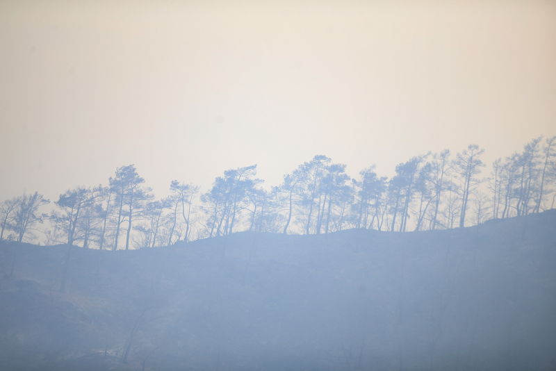 Yangınla mücadele devam ederken, İçişleri Bakanı Süleyman Soylu ile Tarım ve Orman Bakanı Vahit Kirişci bölgeyi ve müdahaleyi havadan inceledi.
