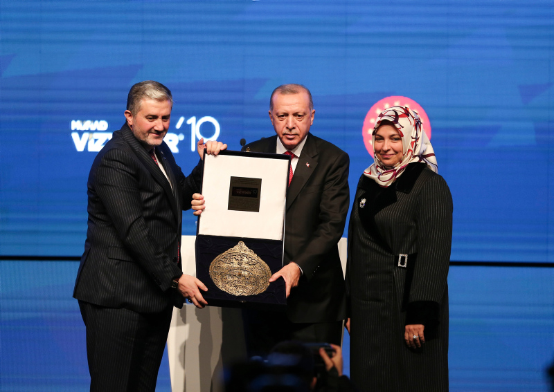 Başkan Recep Tayyip Erdoğan, Haliç Kongre Merkezinde düzenlenen MÜSİAD Vizyoner'19 Zirvesine katıldı. MÜSİAD Başkanı Abdurrahman Kaan, Erdoğan'a usturlab hediye etti.