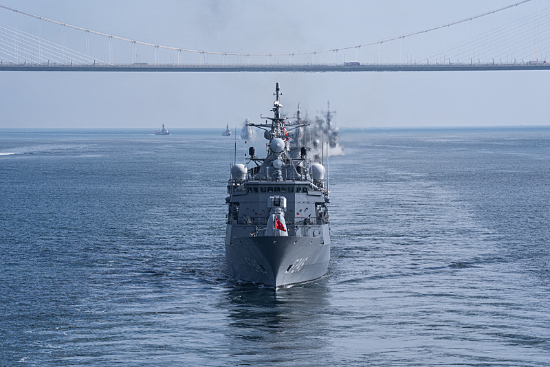 Türkiye'nin ilk amfibi hücum gemisi ve dünyanın ilk silahlı insansız hava aracı (SİHA) gemisi TCG Anadolu'nun öncülüğünde gerçekleşen geçit töreni, Boğaz'ı gören noktalardan vatandaşlarca ilgiyle izlendi.