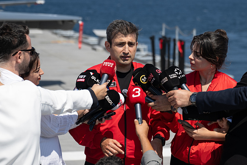 Hatta üzerine baktığınızda Bayraklar TB3 görüyorsunuz. Bayraklar TB3 dünya tarihinde ilk defa kısa bir gemileri inip kalkabilen otomatik bir şekilde insansız hava aracı SİHA olma özelliğini kazandı. Dünya tarihine geçti ve milli deniz havacılığımız böylesine stratejik bir girişle başlamış oldu. Deniz havacılığımız açısından yeni bir çağın kapıları açılmış oldu"