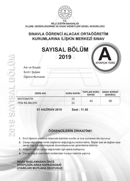SON DAKİKA: 2019 LGS sayısal soru ve cevap kitapçığı! 2019 LGS soru kitapçığı ve cevap anahtarı tamamı