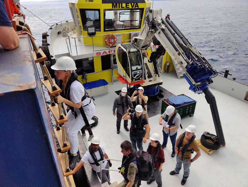 Geminin seyrini ve takibini yapan merkezde görevli müşterek denetleme timi, Mileva ve Gözcü-1 isimli servis botlarıyla gemiye hareket etti.