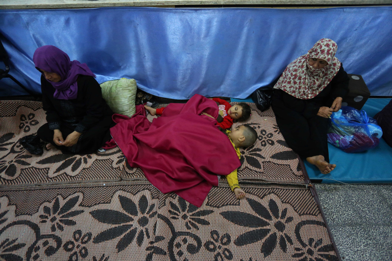 Eş-Şati Mülteci Kampı'ndaki Filistinli aileler, saldırılardan korunmak için bölgedeki okullara sığındı.