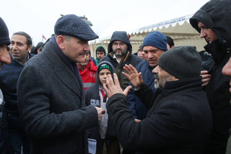 Talepleri dinleyen Soylu, çadırlarda kalan depremzedelerle sohbet etti.