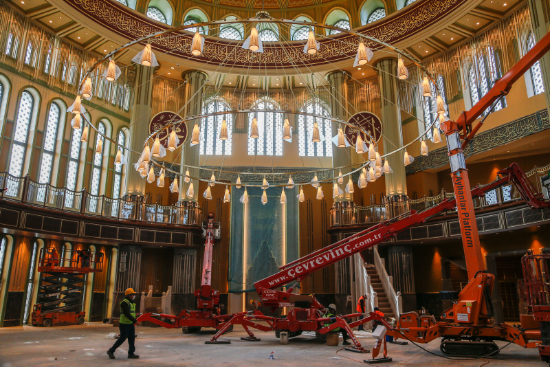 Taksim'de yapılan ve Ramazan ayının son cuma günü ibadete açılması planlanan caminin inşaatında sona yaklaşıldı. Caminin 12 metre çapında, 20 metre yüksekliğindeki 60 ışıklı dev avizesi takıldı. Avizenin elektrik testleri yapıldı.