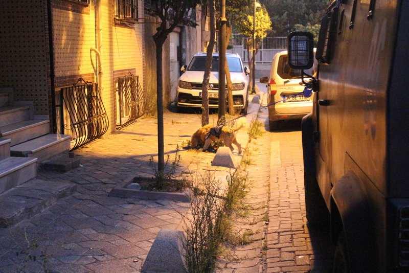 Baskın yapılan adreslerden biri, Silivrikapı Mahallesi'ndeki 3 katlı bir binanın bodrum katı oldu. Özel harekat polislerinin girdiği dairede narkotik köpeği Kanıt, arama yaptı.