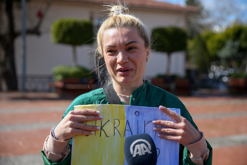 Belediye Meydanı'nda çocuklarıyla toplanan bir grup Ukraynalı, Rusya'nın saldırısını protesto etti. Ellerinde İngilizce ve Türkçe, "Savaşa hayır", "Savaşı durdurun" yazılı dövizlerinin yanı sıra ülkelerine yardım edilmesini istediklerini belirten dövizler taşıyan grup, Rusya Devlet Başkanı Vladimir Putin'in aleyhine slogan attı.