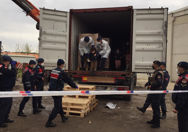 İhbar üzerine, bugün saat 10.30 sıralarında bölgeye giden jandarma ekipleri, 1'i TIR üzerinde yüklü toplam 3 konteyner içinde, öndeki bisküvi kolileri arasına saklanmış aralarında kadınlarında bulunduğu İran, Irak, Afganistan ve Suriye uyruklu çok sayıda kaçak göçmen yakalandı.