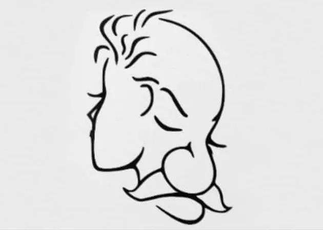 Resimde, başı öne eğik yaşlı bir adam veya başı dik bir genç kız olmak üzere iki farklı öğe bulunmaktadır. Bu optik illüzyon, ilk olarak neyi gördüğünüze dayanarak zihinsel yaşınızı tahmin ettiğini iddia etmektedir.