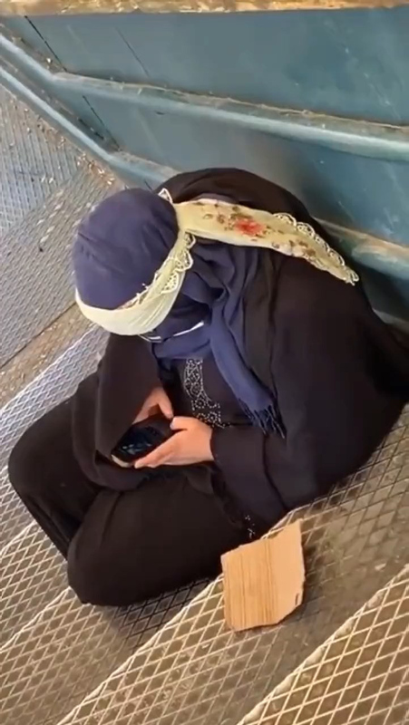 Beylikdüzü'nde üst geçitte dilenen bir kadın, elindeki son model iphone marka telefonla kameraya yakalandı.