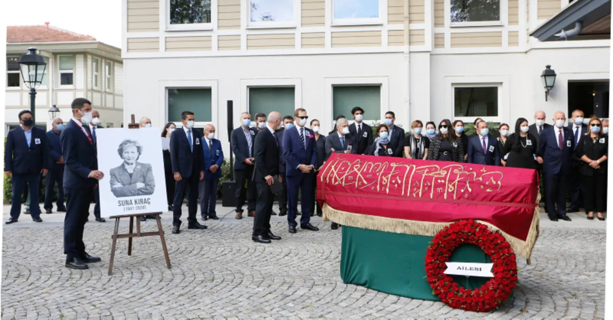Dün vefat eden iş insanı Suna Kıraç, Marmara Üniversitesi İlahiyat Fakültesi Tatbikat Camisi'nde kılınan cenaze namazının ardından koronavirüs tedbirleri kapsamında alınan önlemlerle son yolculuğuna uğurlandı.